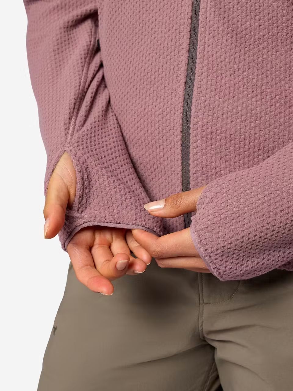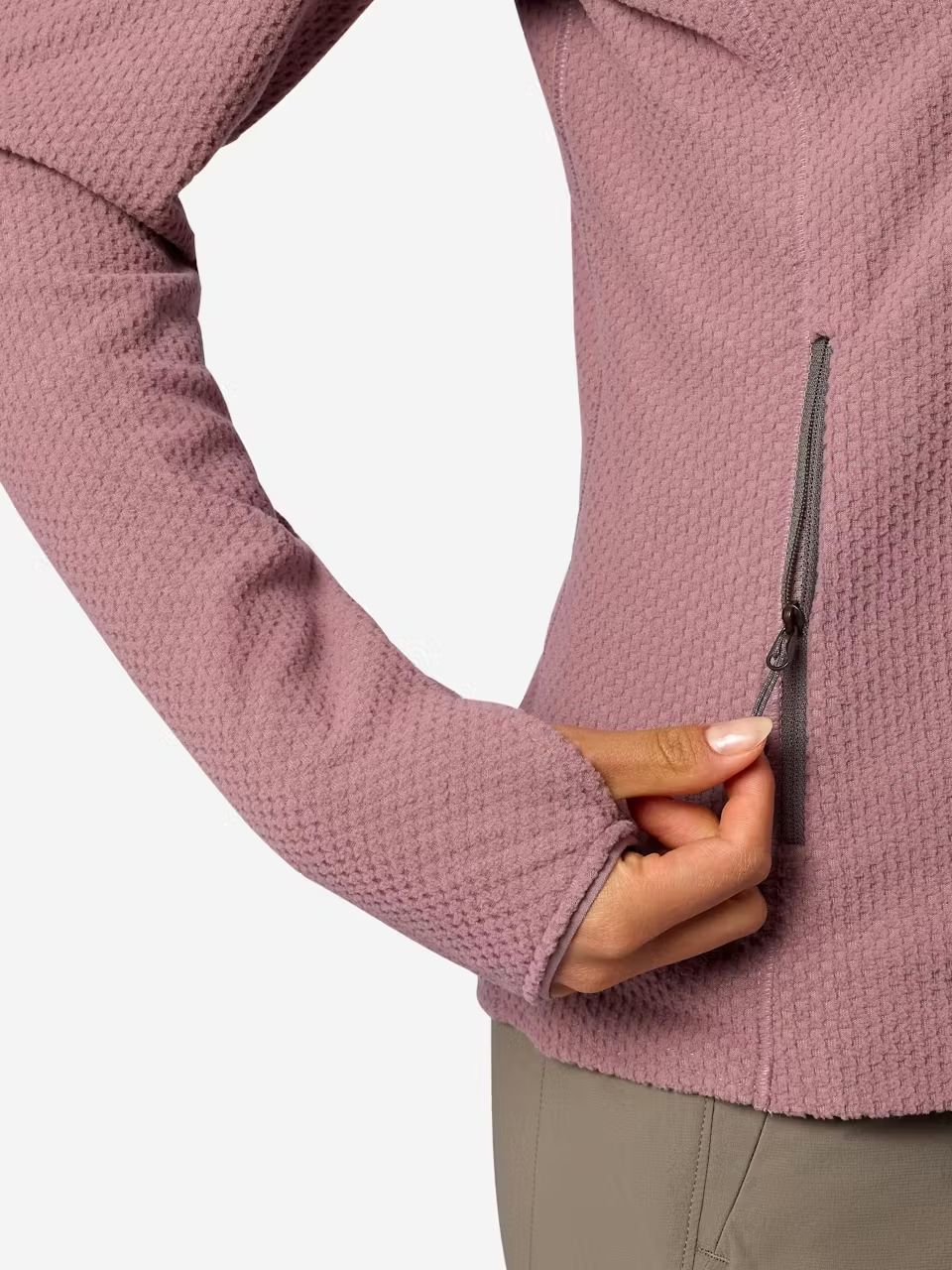 Structura unică cu model grid tip „checkerboard” creează canale de aerisire care mențin căldura aproape de corp, reduc volumul materialului și cresc libertatea de mișcare perfect pentru activități dinamice care încep la rece și se termină cu temperaturi ridicate. Croiala slim, sport, permite layering confortabil sub geacă hardshell, rucsac sau cască.